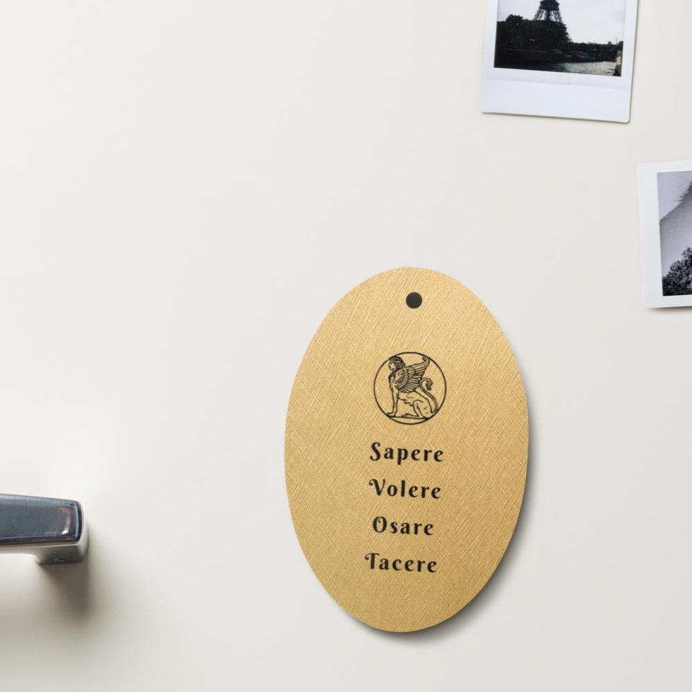 E' un post it che ricorda i quattro poteri della Sfinge, i quattro elementi (nell'ordine aria, fuoco, aria e terra) e le quattro virtù che il mago deve incarnare.