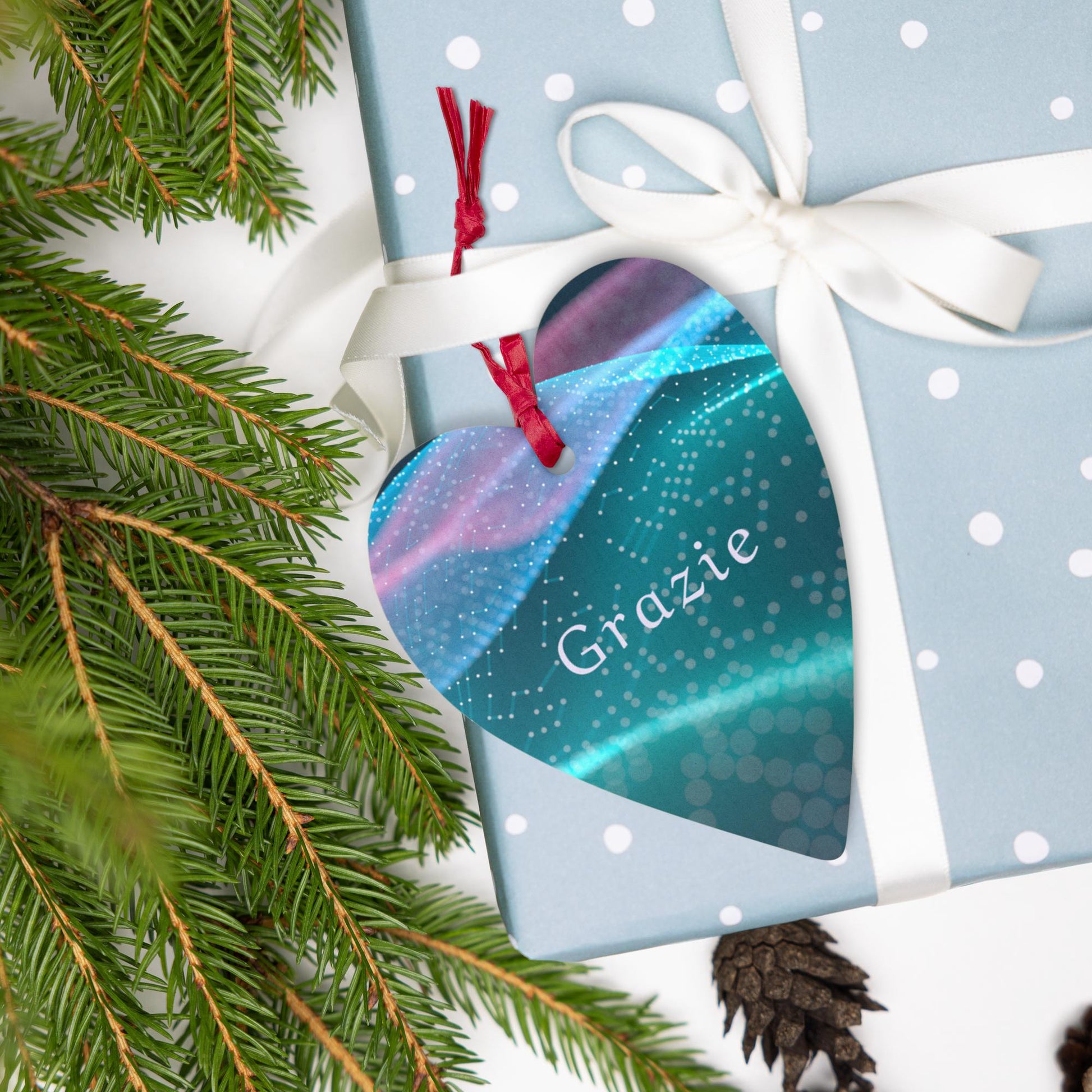 Decorazione in legno con calamita Grazie